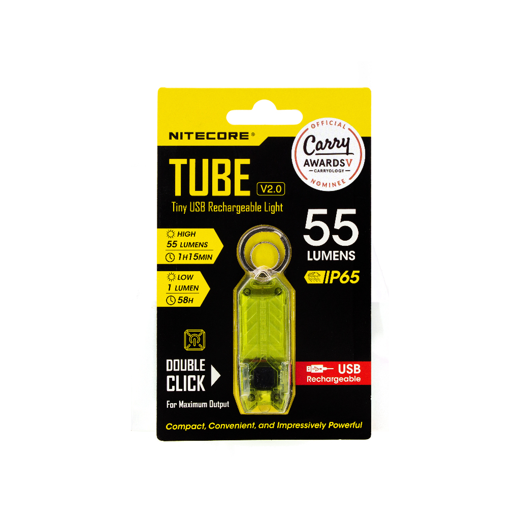 Nitecore TUBE V2.0 предназначен для использования в качестве наключного аксессуара. При этом он является не только декоративным элементом, но еще и прибором с отличной функциональностью. Вес этого небольшого фонарика составляет всего 9,6 граммов с учетом встроенного аккумулятора. Луч фонаря освещает дистанцию до 25 метров, его возможностей вполне достаточно для повседневных бытовых нужд или поиска упавшего вечером на улице предмета. Фонарь не имеет рефлектора, а потому свет от его диода распространяется под большим углом (порядка 100°), что обеспечивает наиболее комфортные условия видимости сразу на большом участке территории. Очень удобной является возможность плавного регулирования яркости света в пределах от 1 люмена до 55. Это позволяет пользователям не только выбирать оптимальные условия освещения, но и экономить заряд аккумулятора, когда это может быть необходимым.
