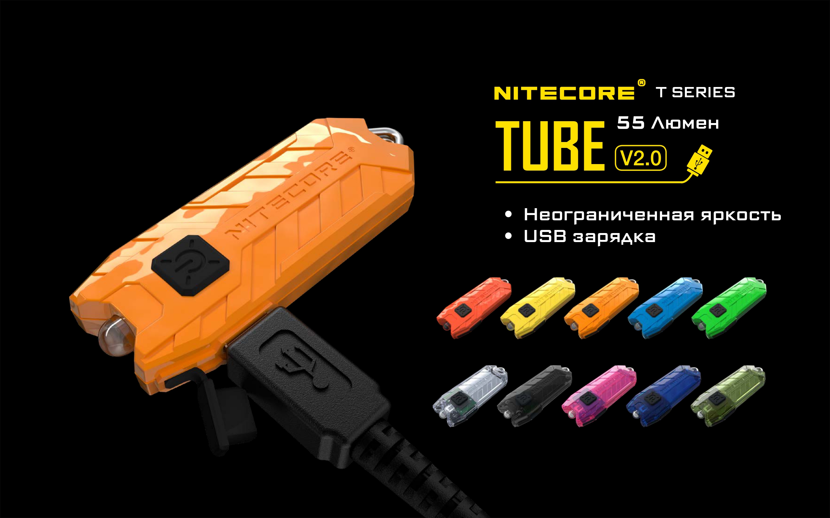 TUBE V2.0 имеет встроенный литий-ионный аккумулятор небольшого размера, от которого может непрерывно работать до 58 часов. Чтобы зарядить этот аккумулятор, потребуется всего лишь подключить кабель с разъемом micro-USB к какому-либо источнику питания, в том числе портативному: powebank, ноутбук или другой прибор. Корпус Nitecore TUBE V2.0 изготавливается из современного полимерного материала — поликарбоната. Он достаточно прочный, чтобы фонарь мог выдержать даже падение с высоты роста человека на бетон или камни. В то же время этот материал очень легкий. Поверхность корпуса сделана текстурной, что не только украшает наключный фонарик, но и не дает ему скользить в руках. Чтобы Nitecore TUBE V2.0 удобно крепился к ключам, в хвостовой части его корпуса размещено стальное кольцо, выдерживающее нагрузку до 35 кг. Фонарик сделан пыленепроницаемым и защищенным от брызг.