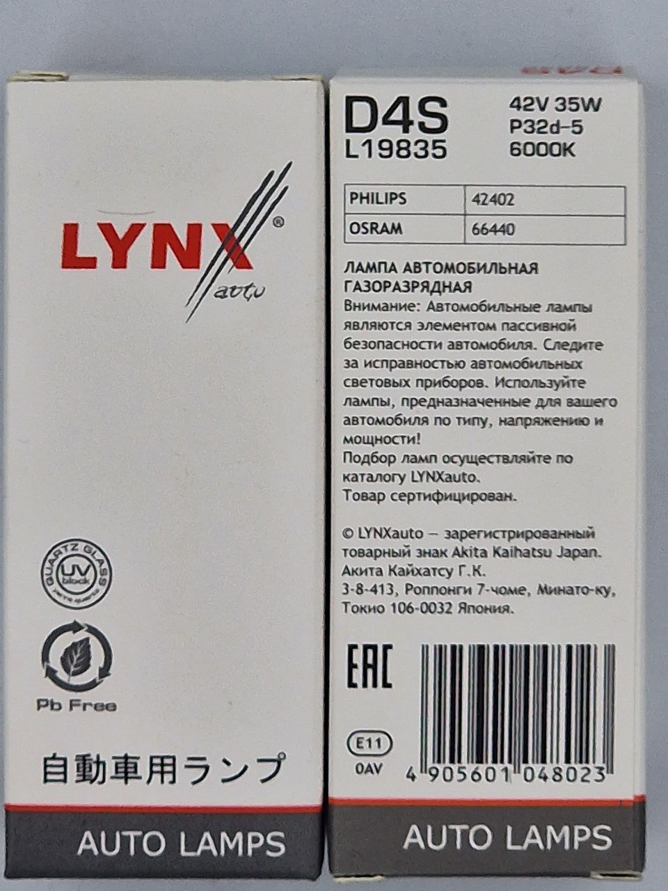 Лампа Lynx D4S 12V 35W 6000K