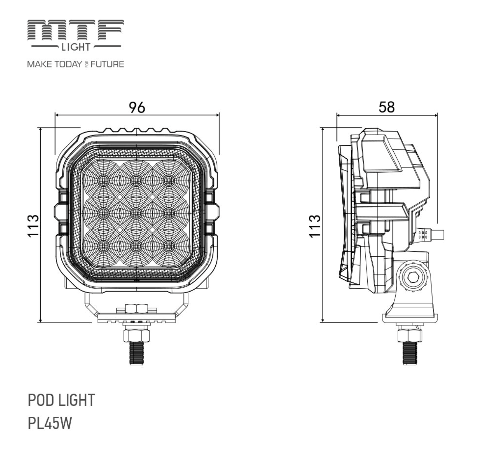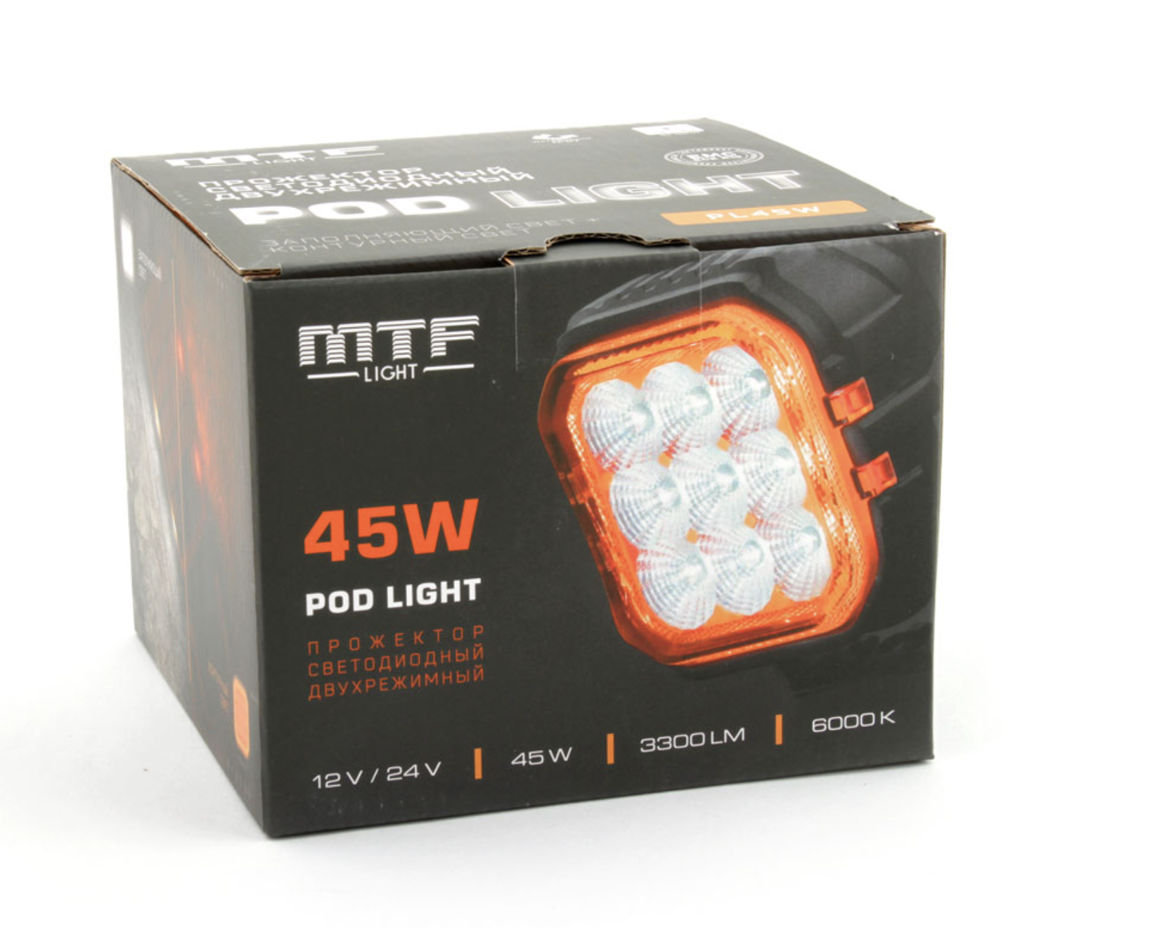 Светодиодный прожектор MTF LIGHT двухрежимный, серия POD LIGHT, 12-24В, 45Вт, 3300лм, 6000К, шт.