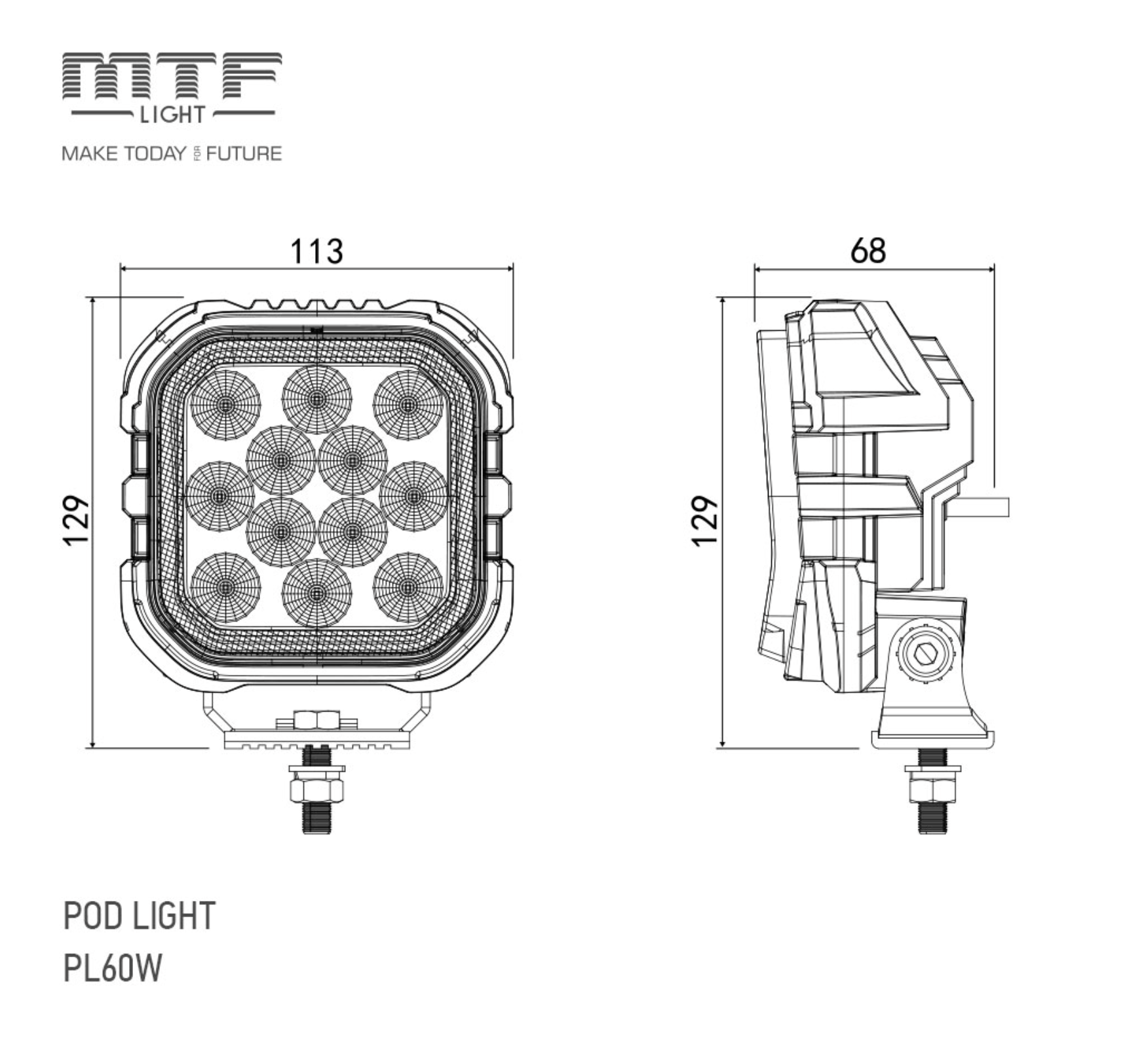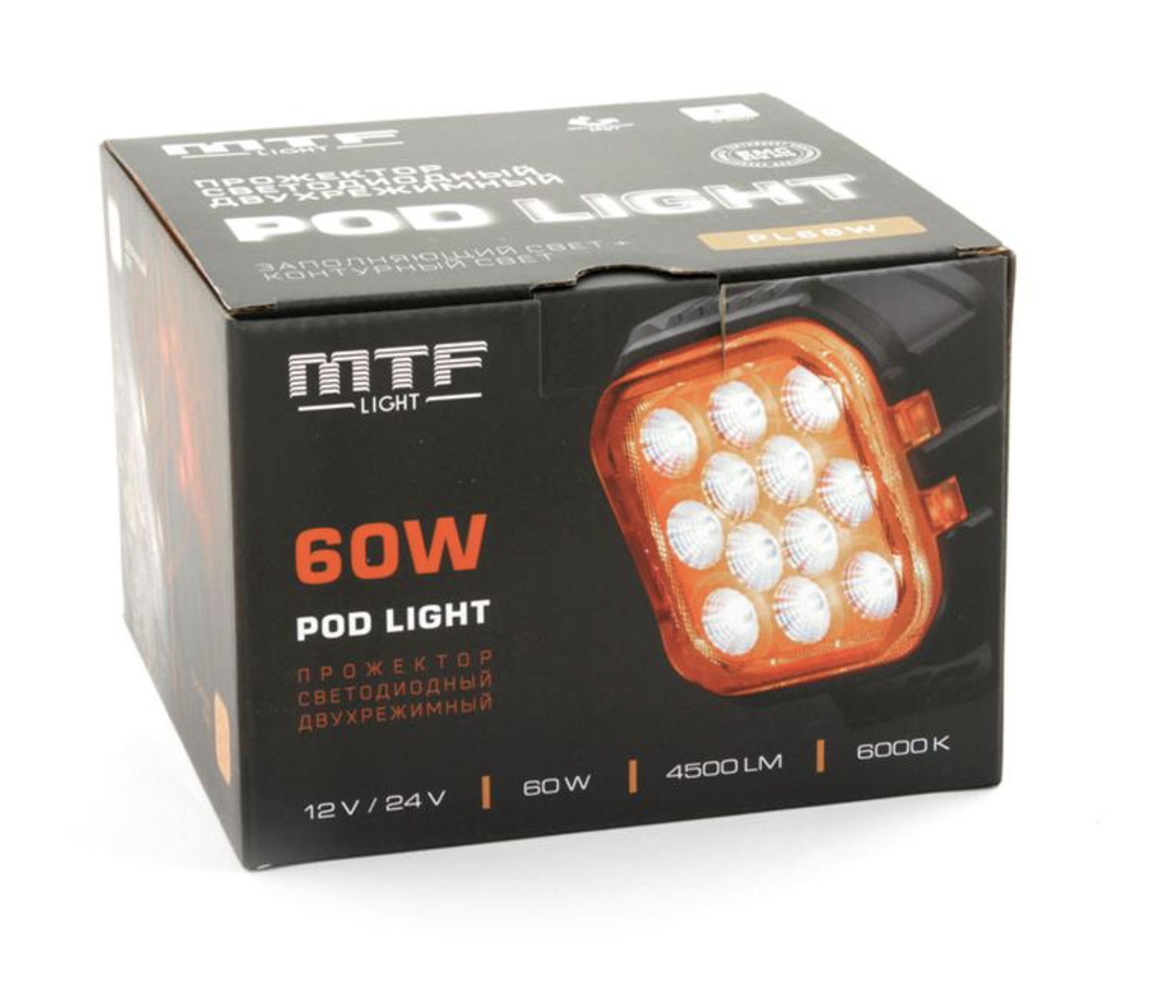 Светодиодный прожектор MTF LIGHT двухрежимный, серия POD LIGHT, 12-24В, 60Вт, 4500лм, 6000К, шт.