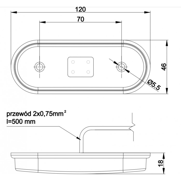 Габаритный светодиодный фонарь Fristom FT-020 C LED красный, 12-36V, провод 0.5м, без кронштейна