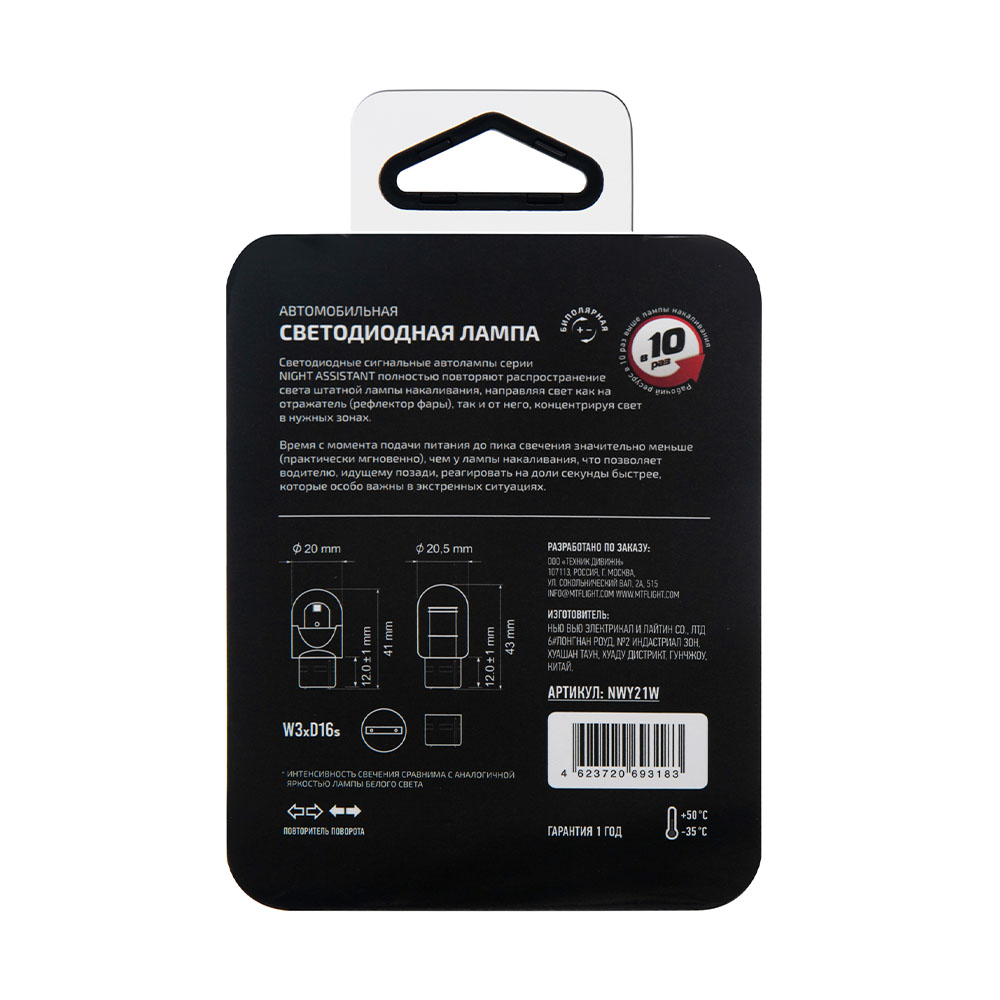 Светодиодная автолампа MTF Light серия Night Assistant 12В, 2.5Вт, WY21W, янтарный