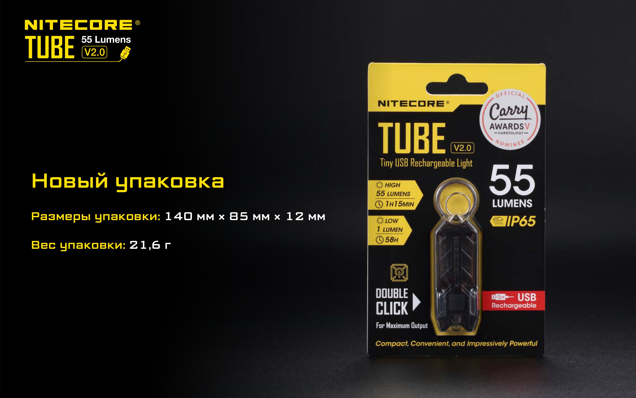 Наключный фонарь NITECORE TUBE V2.0 LEMON З/У USB