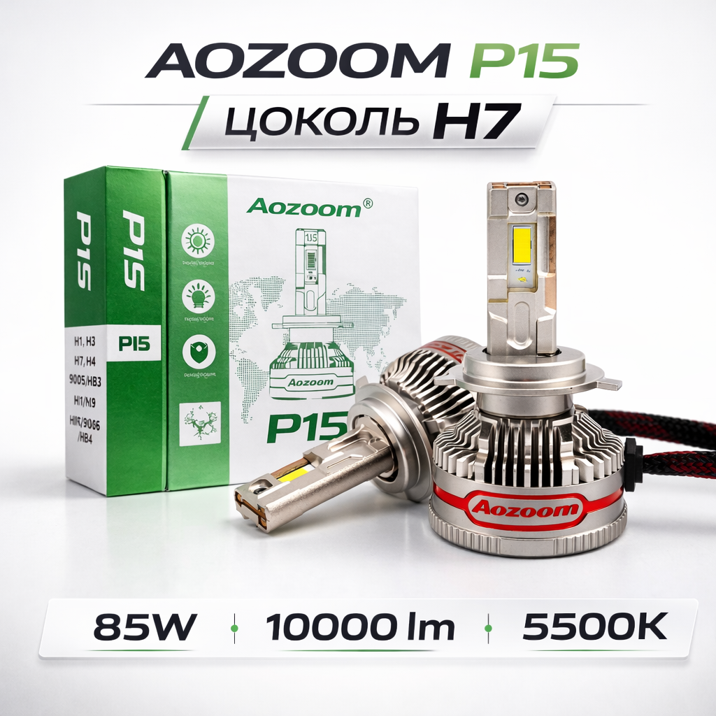 Комплект светодиодных ламп Aozoom P15 H7 85W, 10000Lm.