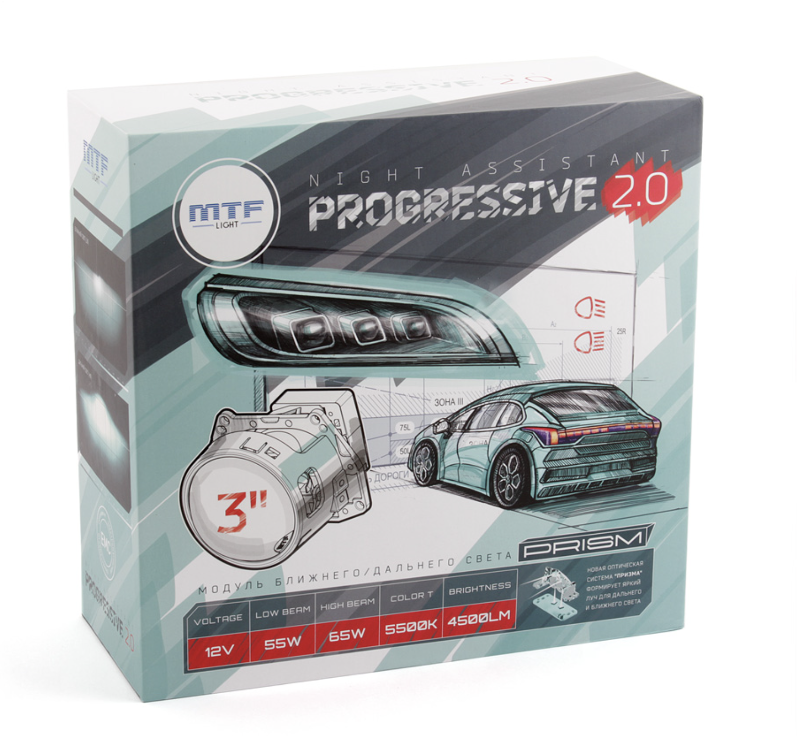 Линзы для фар ближ/дал. света MTF LIGHT серия PROGRESSIVE 2.0, 12В, 55/65Вт, 5500К, 3"