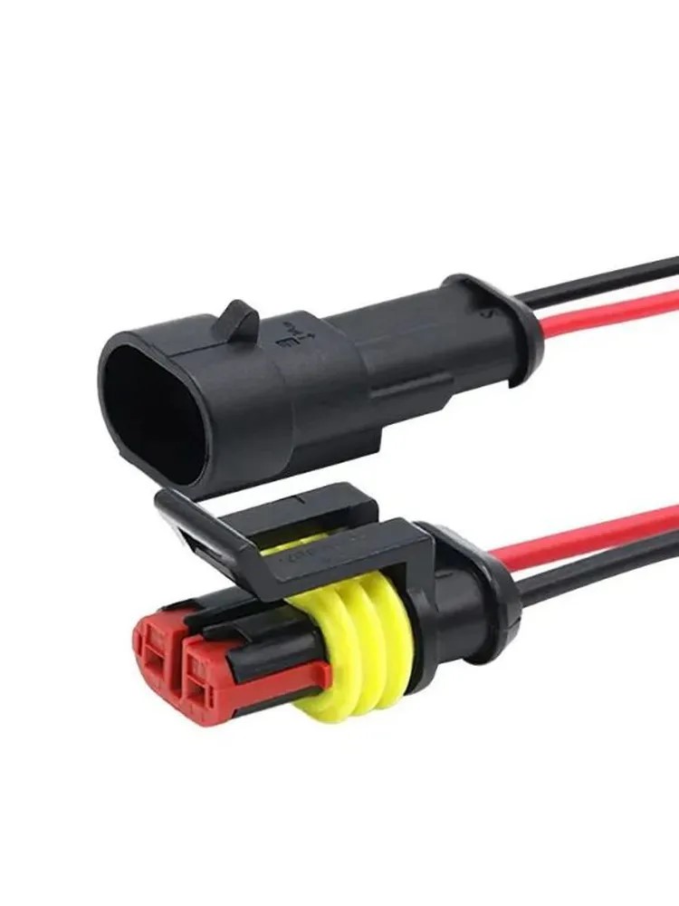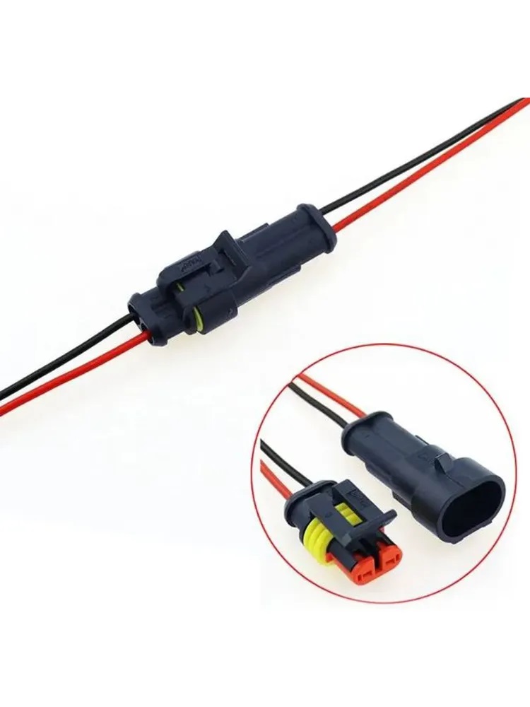 Разъем - коннектор AMP 2 pin автомобильный, герметичный, с проводом (папа+мама)